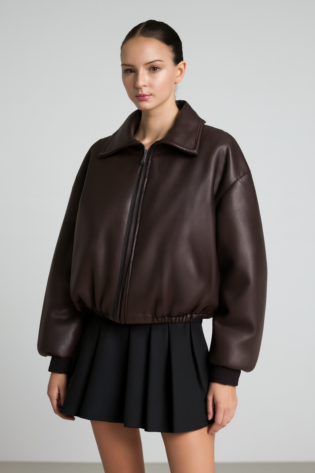 تجمع هذه السترة القصيرة بين التصميم المعاصر والراحة المطلقة. قصتها الواسعة قليلاً تبرز القوام بينما توفر حرية حركة مثالية. مثالية لمظهر حضري أنيق، يمكن ارتداؤها بسهولة يوميًا أو في الخروج.
