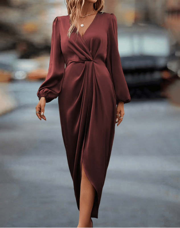 Μαργαρίτα | Κομψό Σταυρωτό Φόρεμα με Μακριά Μανίκια
