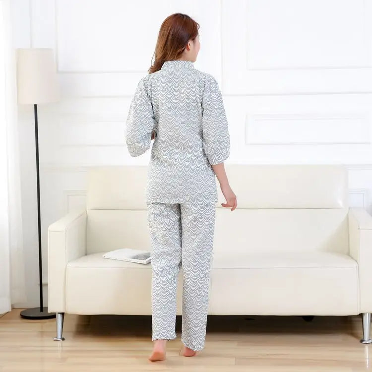 Ε εμπνευσμένο από την ιαπωνική παράδοση, αυτό το πιτζάμα προσφέρει άνετη εφαρμογή για μέγιστη ελευθερία κίνησης. Το μαλακό ύφασμά του εξασφαλίζει ήσυχες και ευχάριστες νύχτες.