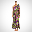 Αυτό το μακρύ ασύμμετρο φόρεμα αποκαλύπτει τον ώμο με διακριτικότητα και κομψότητα. Το ρευστό του στρίφωμα και το ελαφρύ ύφασμα εξασφαλίζουν ιδανική άνεση, ακόμη και σε ζεστό καιρό. Τέλειο για μια κομψή και τολμηρή εμφάνιση το καλοκαίρι.