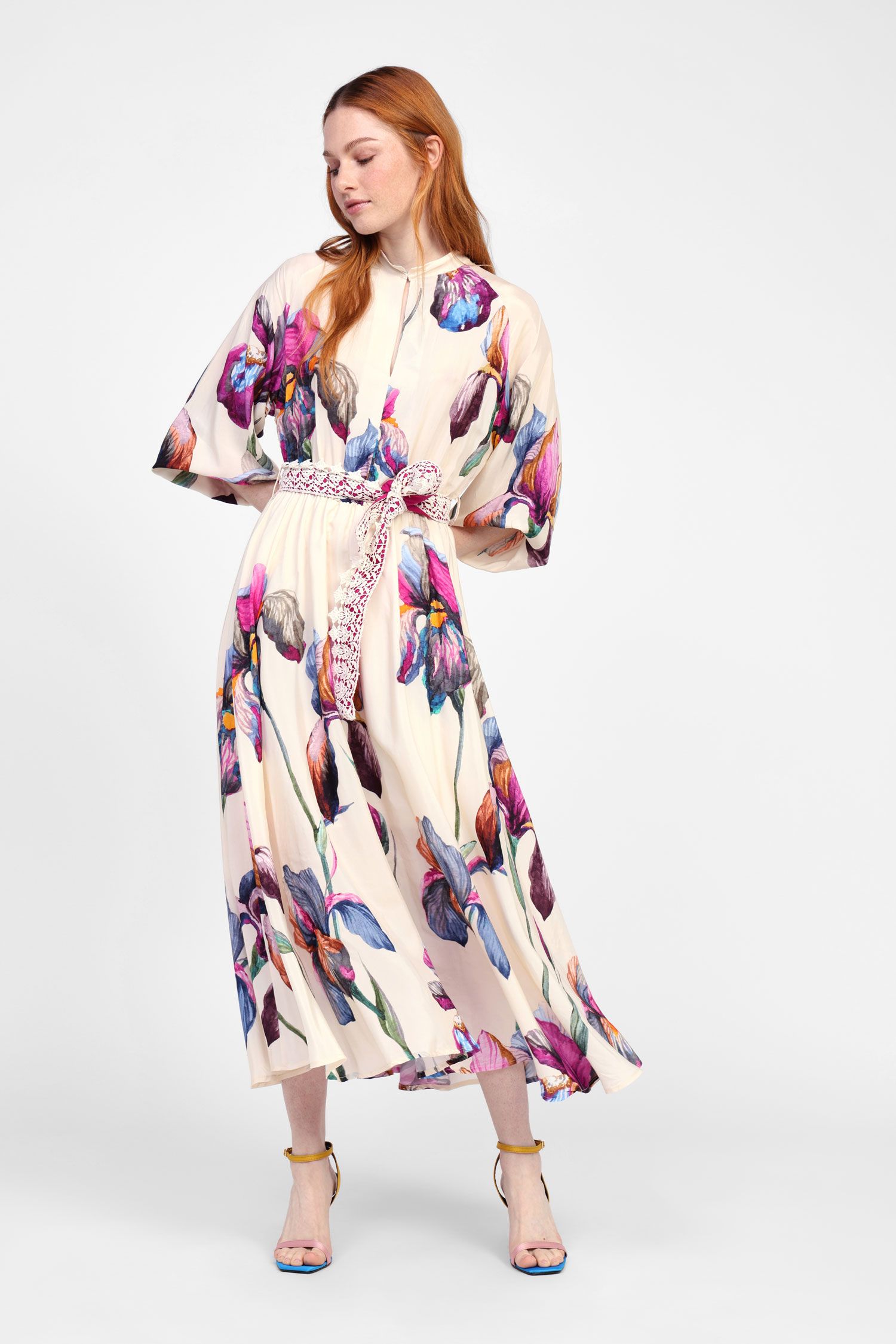Tämä pitkä mekko tarjoaa sulavan siluetin, jota korostaa herkkä virkattu vyö. Sen kukkakuosi tuo raikkautta ja naisellisuutta. Ihanteellinen tapahtumiin, lomille tai illanviettoon ystävien kanssa.