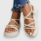 סנדלי פלטפורמה אלו מציעות איזון מושלם בין קלות לתמיכה. הרצועה האלסטית שלהן מבטיחה התאמה קלה, בעוד שהרצועות החצויות מוסיפות נגיעה אלגנטית להופעה שלכם. מושלמות לטיולים, יציאות קיץ או ימים נינוחים.