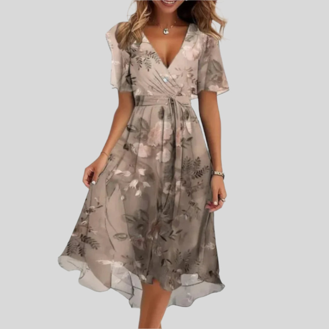 אלודי | שמלת פלואיד עם הדפס פרחים ושרוול בצורת V