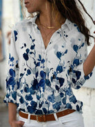クレール | シックなブラウス – 青いプリントとエアリーなシルエット