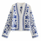 - レトロなタッチのための対照的な花の刺繍。