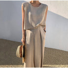 このセットにはワイドレッグパンツとラウンドネックのトップが含まれています。ゆったりとしたカットは、素晴らしい動きの自由を保証します。エレガントな複数の色で利用可能です。