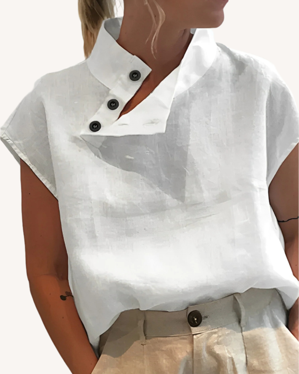 Nour | Bluse Dame Kort Erme Med Høy Krage